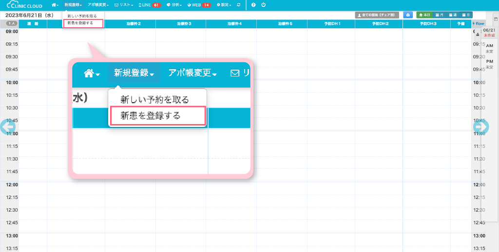 ※新患登録が完了しても、新患の新規予約枠に患者番号を紐付けることをお忘れないようご注意ください