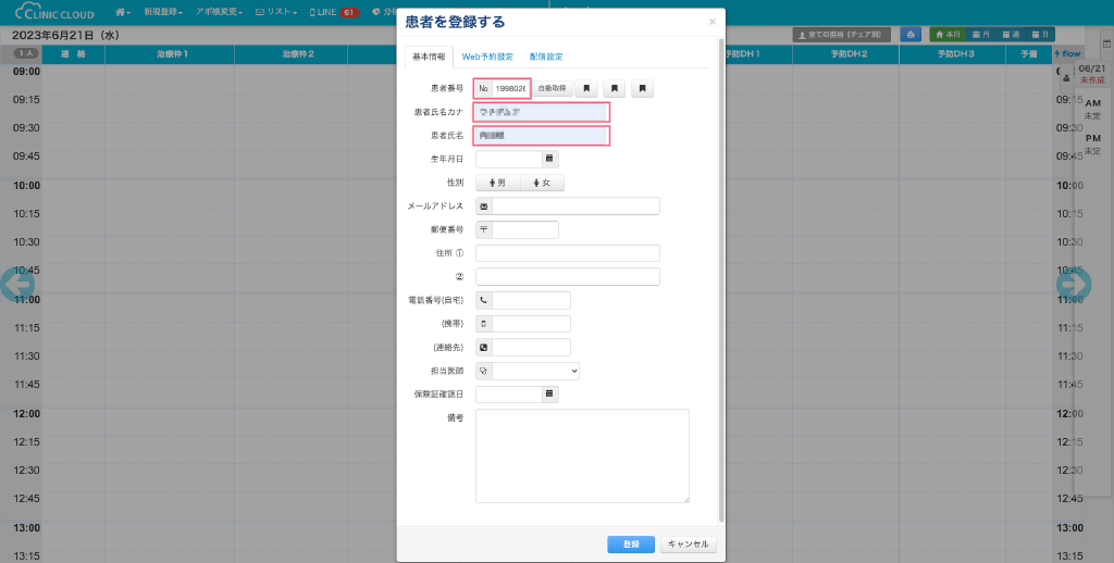 3.レセコンで発番した患者番号で患者情報が呼び出せたら登録完了です