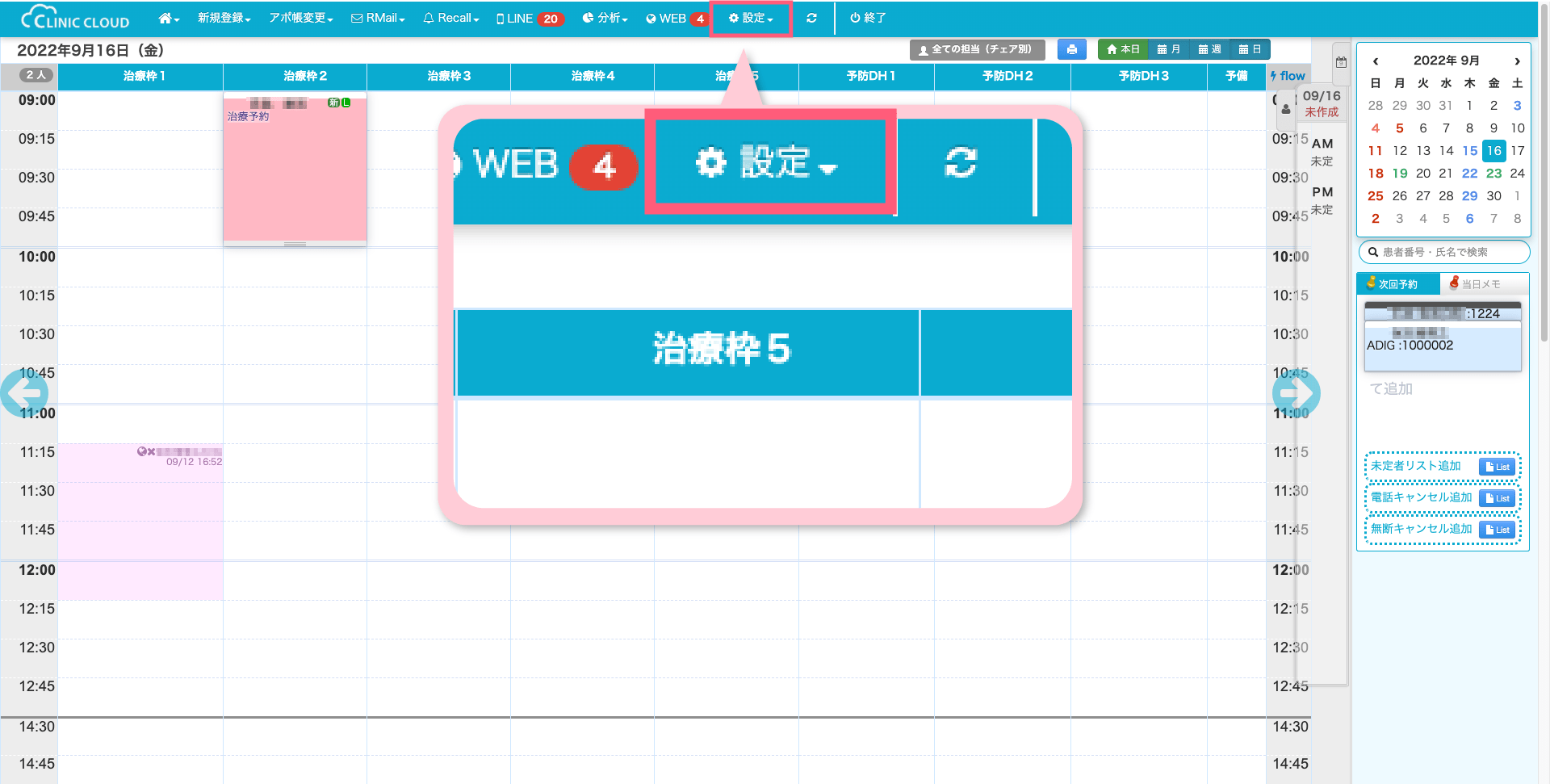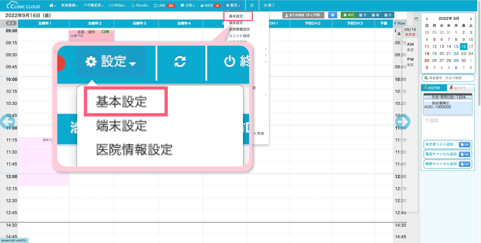 クリニッククラウドの予約一覧画面と患者向けweb予約ページの