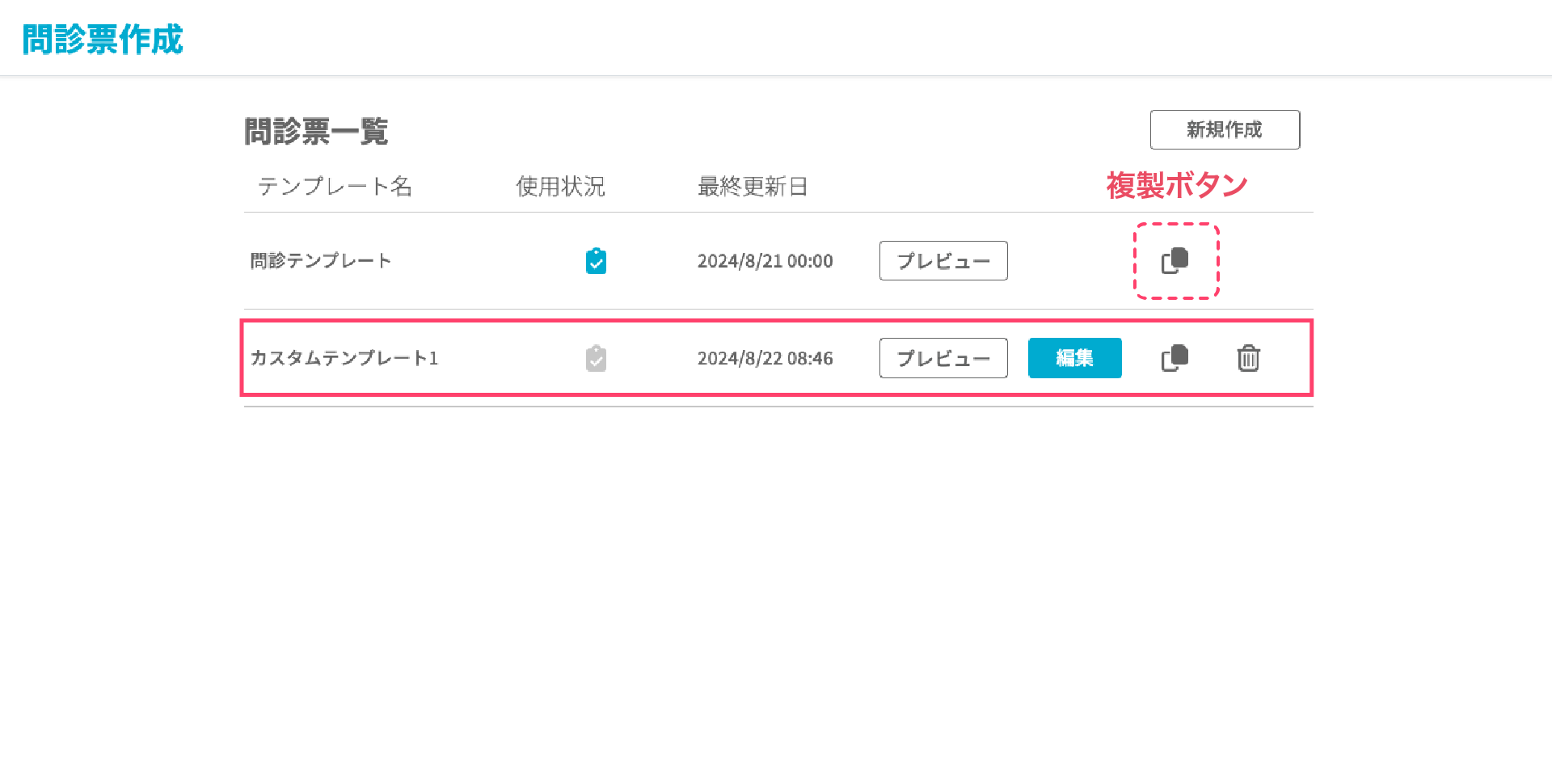1.テンプレートを編集したい場合には、複製をしてカスタムテンプレートを編集してください