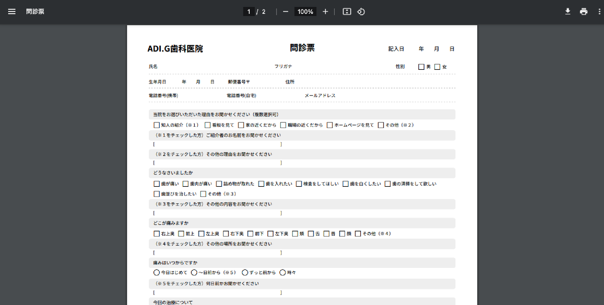 ※問診票はオプション機能になります。詳しくは担当営業まで