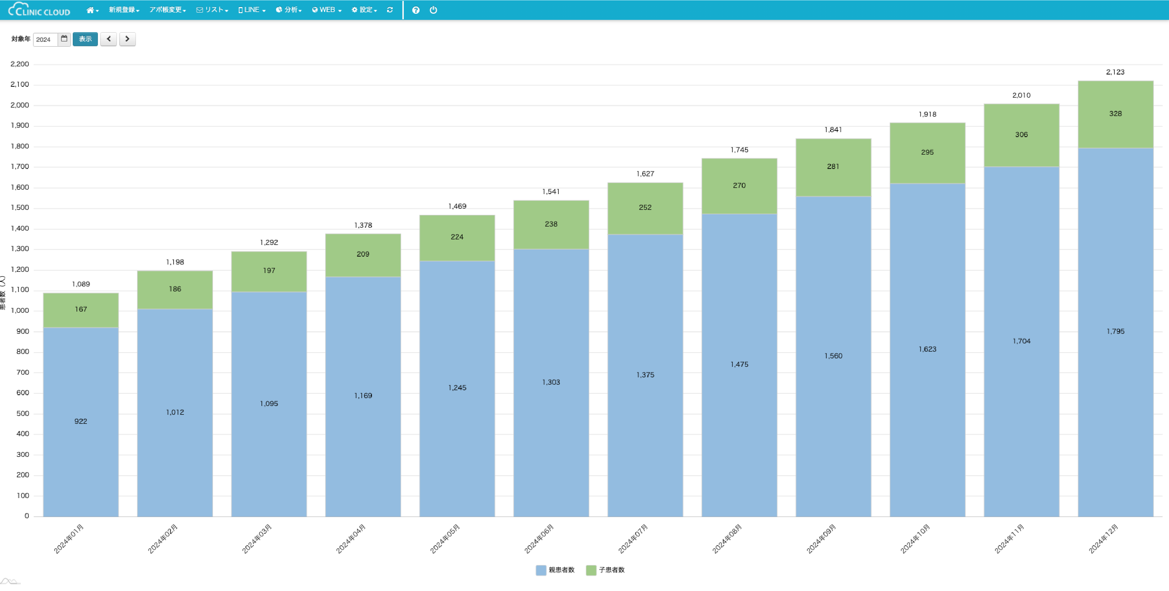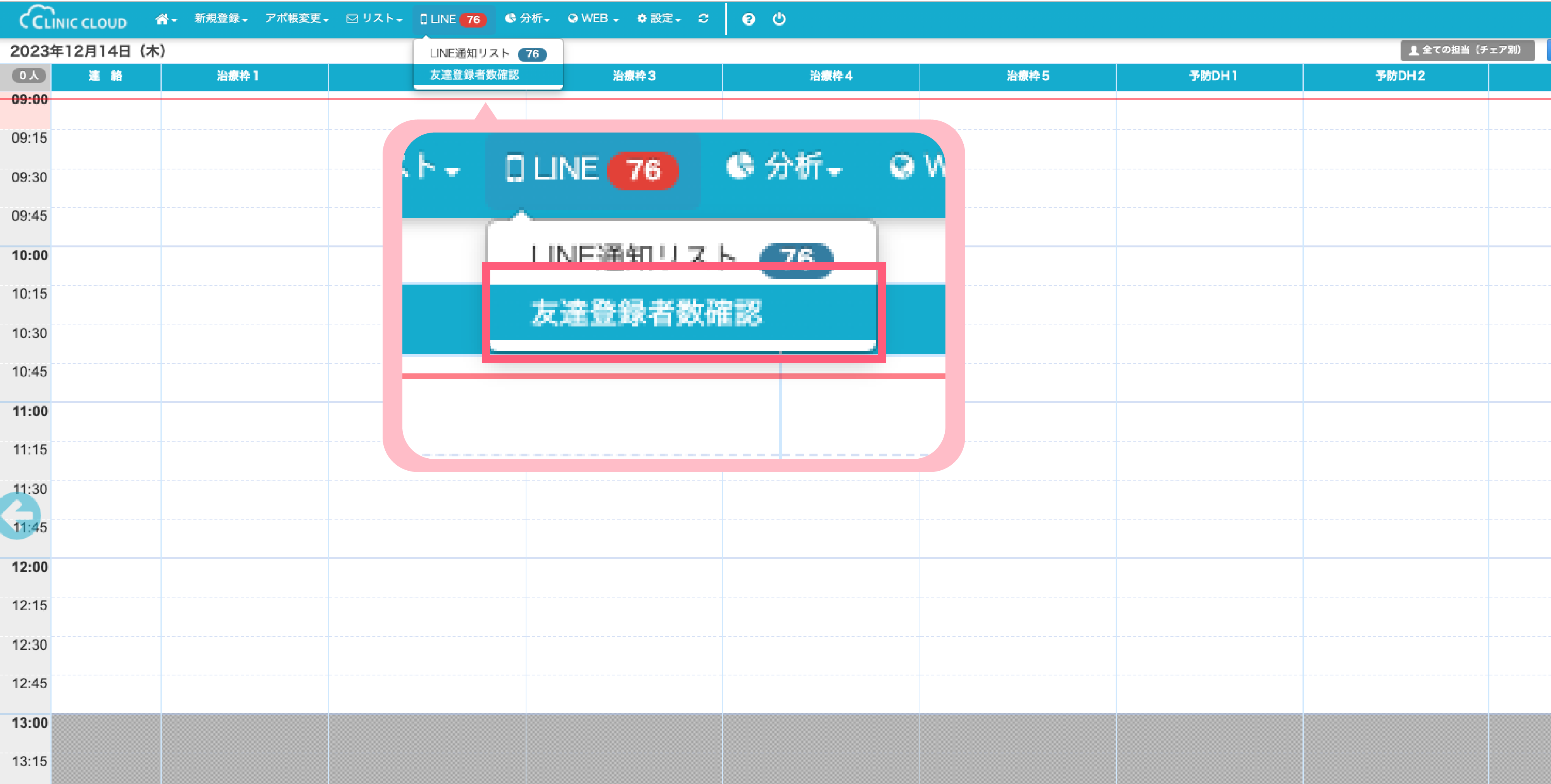 メニューバーの「LINE」>「友達登録者数確認」をクリックすると別タブで開きます