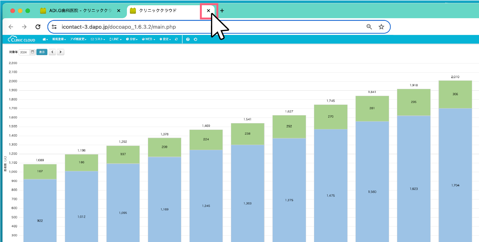 元の画面(予約台帳画面)に戻る場合は、タブを閉じてください