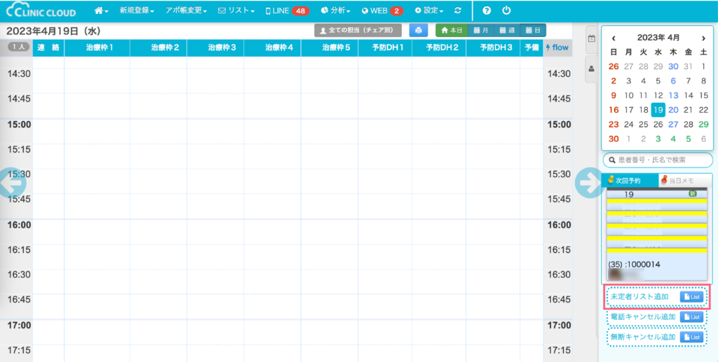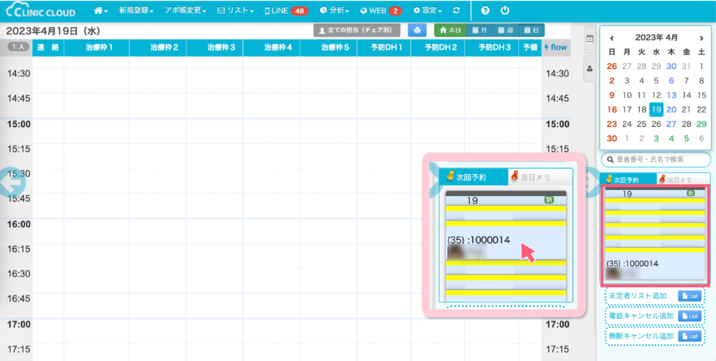 保留枠・未定者リストアップデートのお知らせ 投稿日 2023年4月27日 ABOUT 保留枠に保存できる件数の制限がなくなりました。また、未定者リストへの登録は 1患者 2件までとなりました。 保留枠に保存できる件数の制限がなくなりましたカーソルを合わせると拡大表示され、一定数以上になるとスクロールして表示ができます 未定者リストへの登録は1患者2件までとなりました ← 予約データ出力機能リリースのお知らせ → 予約データの出力期間についてのお知らせ